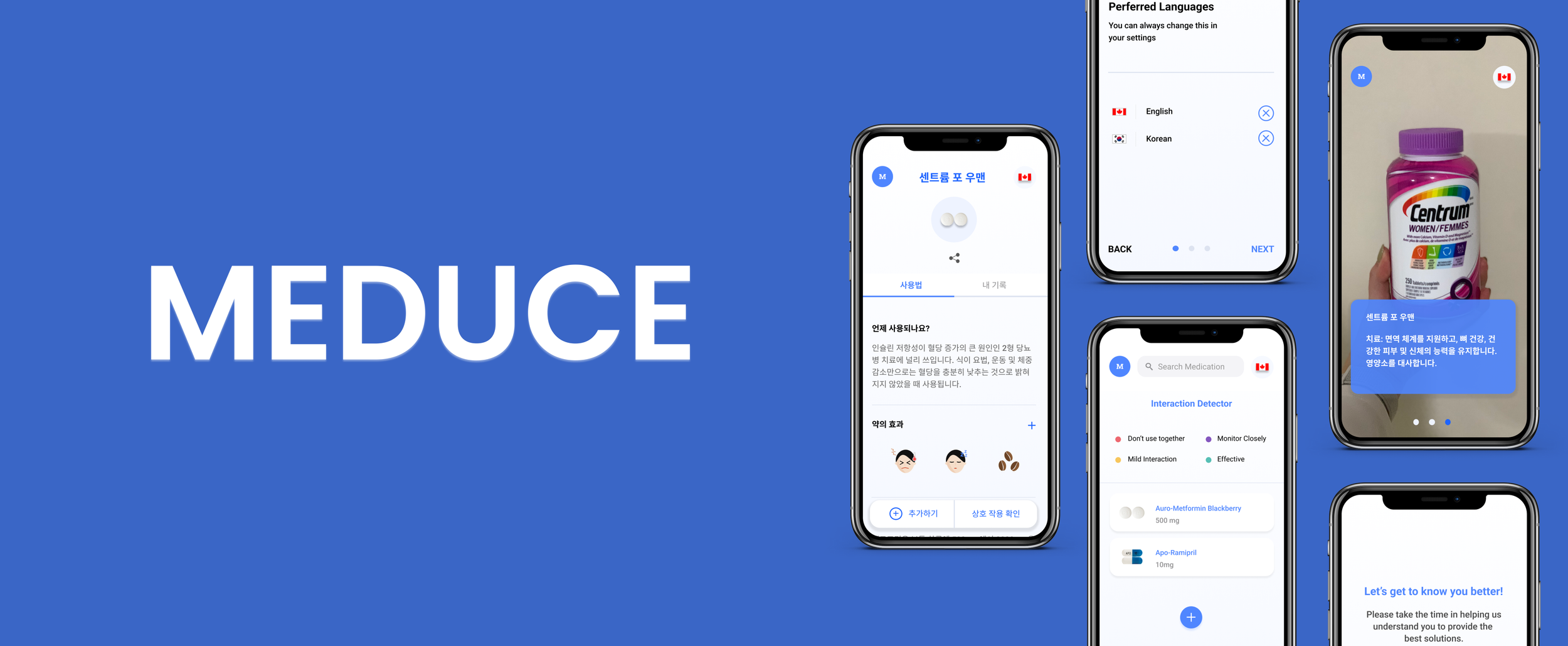 Meduce received an honourable mention in the 2021 Emily Carr University Grad Show and increased my passion for research. Having parents who struggle with English as their second language, and seeing the scale of this problem so close by, I was continuously motivated to develop it into a service that could fulfill the needs of many people.